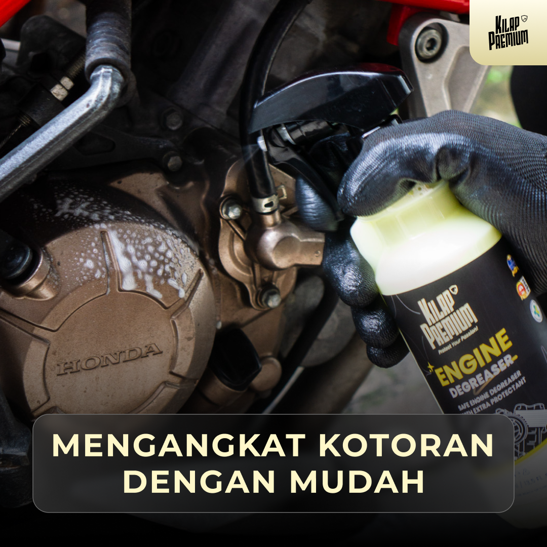 Engine Degreaser by Kilap Premium adalah pembersih noda pada permukaan, mesin, kaki-kaki dan velg. Tambahan kandungan dressing di dalamnya dapat membuat tampilan mesin tetap seperti baru. Selain itu, tidak membuat kusam seperti degreaser konvensional, sehingga aman buat motor dan mobilmu tetap terjaga!