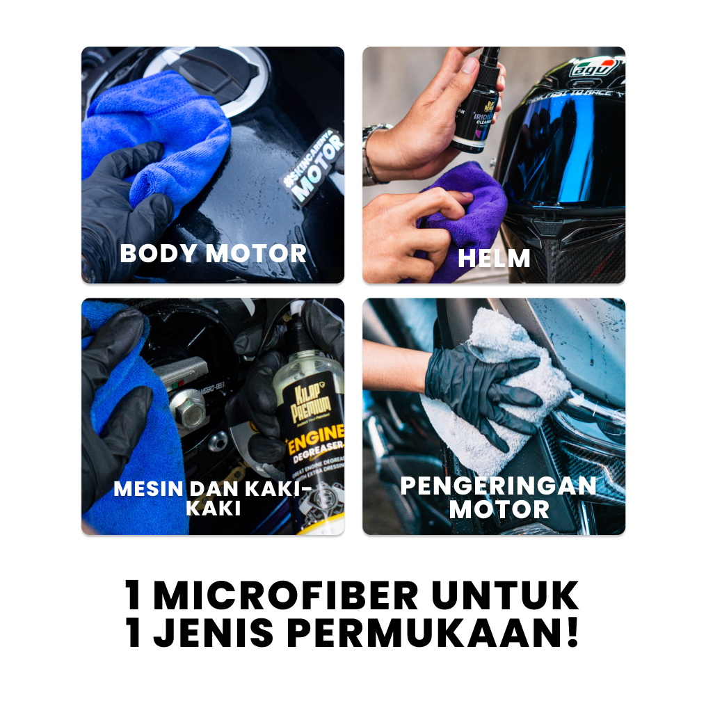 ✅SAFER SOLUTION WITH 1 FOR 1 WAY - Kilap Premium Microfiber Package dapat menjadi solusi yang aman untuk motor maupun helmmu! Kok bisa?🤔 Dengan membagi pemakaian 1 microfiber untuk 1 jenis permukaan, kamu dapat menghindari potensi baret yang disebabkan oleh kotoran yang terbawa dari permukaan lain! Jadi bikin motormu tetep kinclong deh!😎