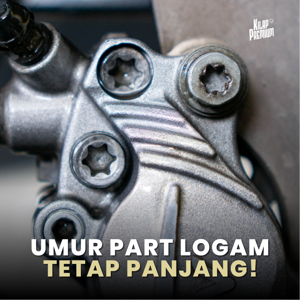 ✅MEMPERTAHANKAN UMUR PART LOGAM! - NIH BIAR MIMIN KASIH TAU! Karat yang sifatnya korosif dapat dengan cepat membuat umur part logam pada motor jadi pendek yang ditandai dengan pengeroposan logam, hingga akhirnya patah :( Tapi, dengan Rustex by Kilap Premium, kamu bisa mencegah terjadinya korosi yang diakibatkan oleh karat sebelum menjadi lebih parah. Dengan umur part logam yang lebih panjang, kelayakan kendaraanmu juga tetap terjaga!